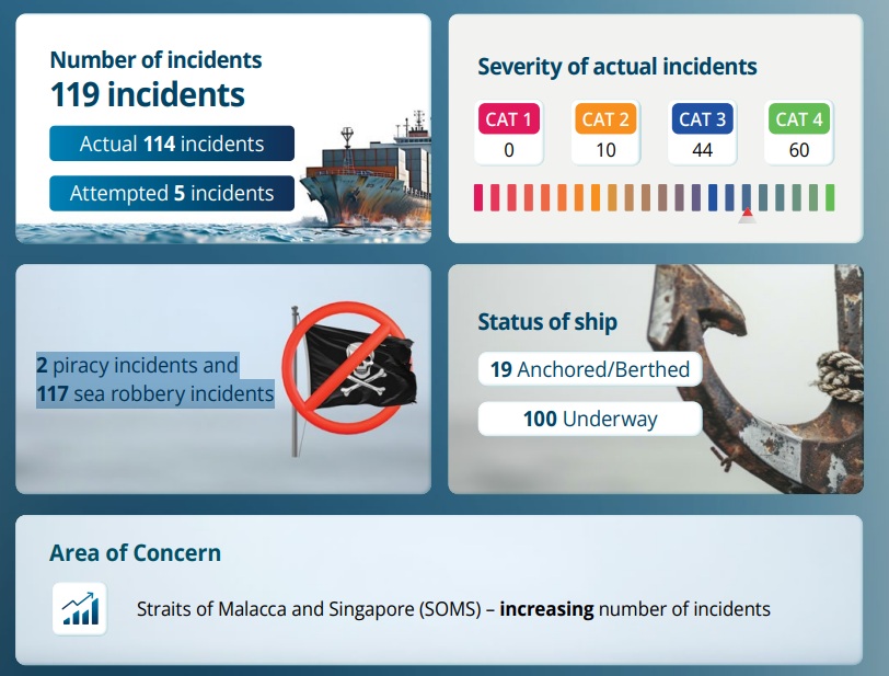 Furthermore, the majority of sea robbery incidents involved petty theft, with perpetrators typically unarmed and no injuries reported among crew members. Notably, there was a sharp decline in incidents during the third quarter (July to September 2025), following the arrest of the perpetrators by Indonesian authorities in July.
